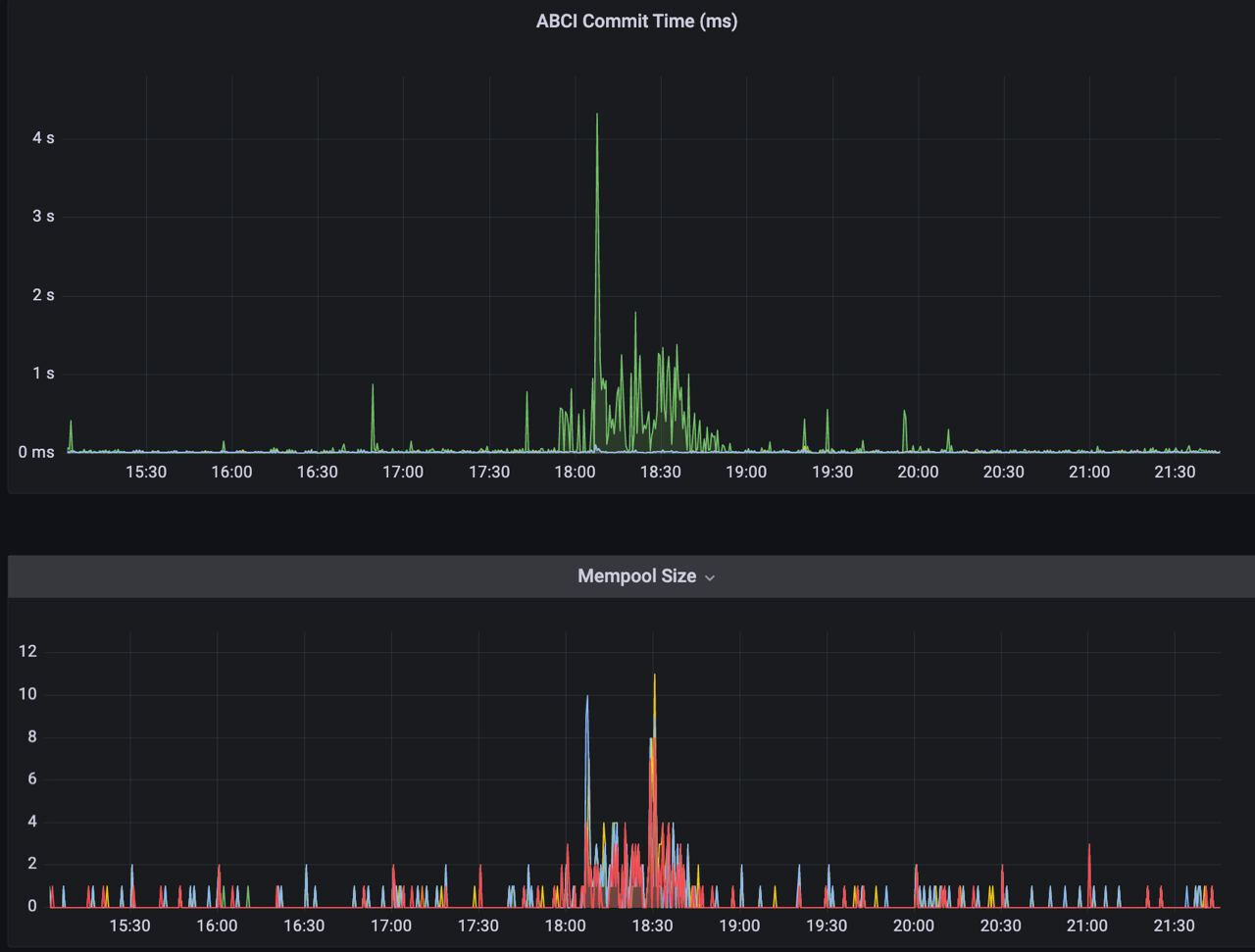 We did notice a few missed blocks by validators during the start of the stress test, but most were able to keep up with the testnet block productions under the condition.