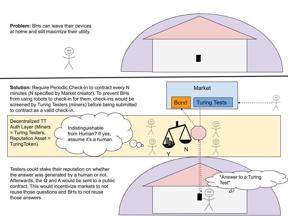 Another idea would be to require that market creators specify the tracking device they want their bond holders to use. They’d be incentivized to specify trustworthy devices to increase honesty in their markets.